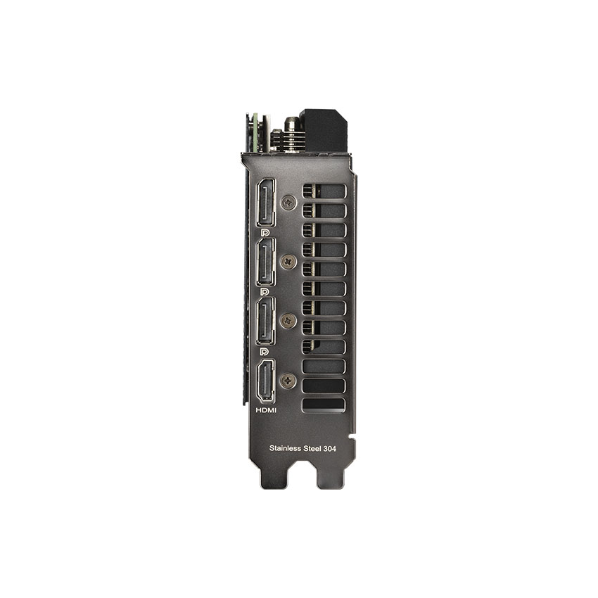 Asus Dual GeForce RTX 3060 có khe chắn các cổng kết nối bên hông làm từ chất liệu thép không gỉ cao cấp. Loại thép 304 vừa an toàn vừa bền bỉ, cứng cáp và chống ăn mòn hiệu quả.